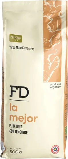 Erva Mate FD La Mejor Pura Folha com Gengibre 100% Orgânico - 500G