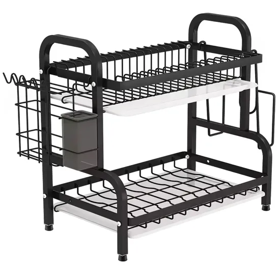 - Duplo nível de armazenamento, design compacto, drenagem eficiente, peças desmontáveis