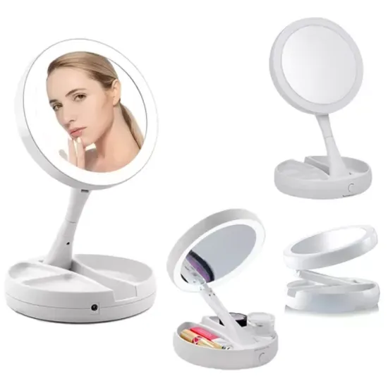 Espelho para Maquiagem LED XJ-988 / 1X - 10X / Recarregavel e A Pilha - Branco