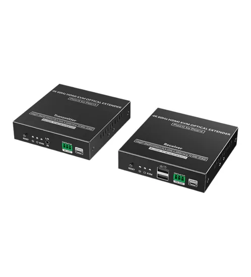 Este produto é um kit extensor óptico HDMI KVM 4K@60Hz que consiste em um transmissor e um receptor, usando a tecnologia ipcolor STREAM para transmissão de alta definição e baixa latência. O sinal HDMI 4k@60Hz pode ser estendido até 40 km por cabo de fibra monomodo LC, suportando conexão um-para-um ou switch gigabit em cascata. Ele também suporta saída de loop HDMI, KVM e passagem RS-232 e pode ser amplamente utilizado em reuniões, entretenimento doméstico, apresentações educacionais e outros campos.