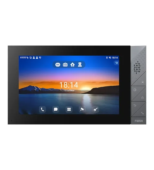 A estação interna Fanvil i55A possui tela sensível ao toque colorida de 7 polegadas com uma IU intuitiva. Baseado no sistema operacional Android 9.0, ele atende às necessidades de personalização de aplicativos da indústria e desenvolvimento secundário. Apresentando funcionalidades poderosas como abertura remota de portas e monitoramento em tempo real para dispositivos de segurança, o i55A serve como um assistente de gerenciamento para comunidades, vilas e prédios de escritórios.