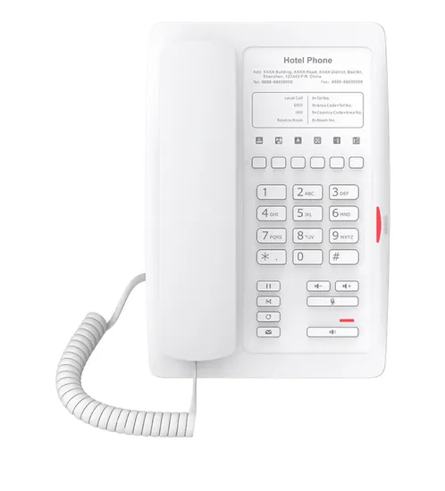 Fanvil H3W é o telefone IP projetado para hotéis. Com aparência elegante e fresca, excelente qualidade de voz e plataforma de comunicação integrada correspondente, pode se tornar uma nova geração de equipamentos terminais inteligentes para hotéis.