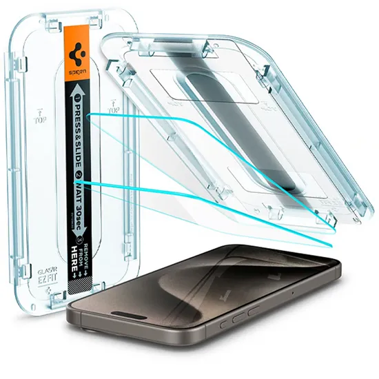 Filme para iPhone 15 Pro Spigen Glas TR Ez Fit AGL06892 (2 Peças) - Transparente