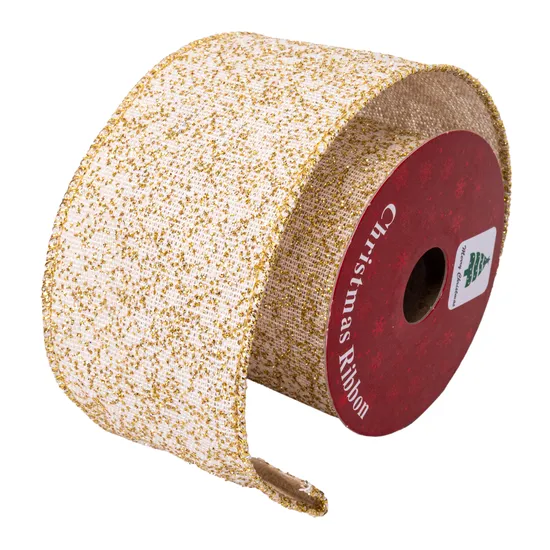 Fita Decorativa de Natal Bege com Glitter Dourado 6CM X 2,7M