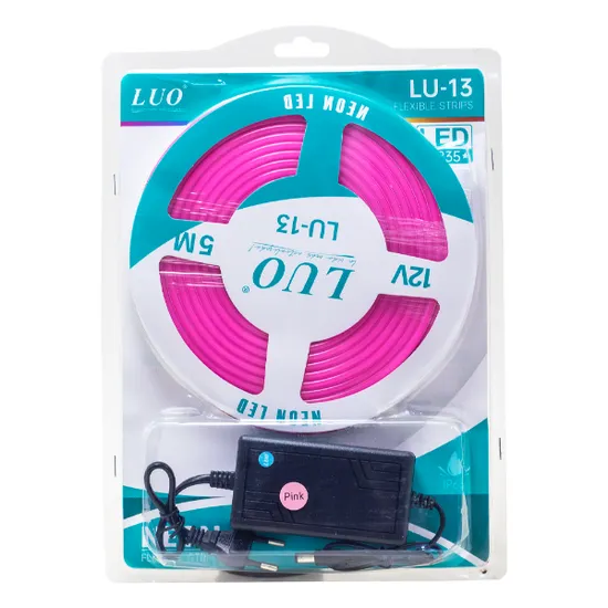 Fita LED Neon Luo LU-13 de 5 Metros / 12V / IP65 / 100-240V ~ 50/ 60HZ - Rosa
