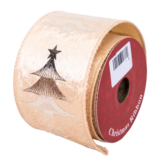 Fita Natalina Creme com Desenho de Árvore de Natal 6CM X 2,7M