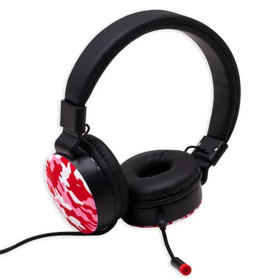 Fone de Ouvido Game com Fio Headphone GM-014 com Microfone 3.5MM / Cabo de 1.2 Metros - Camuflado Vermelho/Rosa