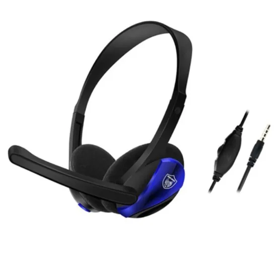 Fone de Ouvido Gamer Headset Gaming com Fio GM-006 com Microfone 3.5MM - Preto/Azul