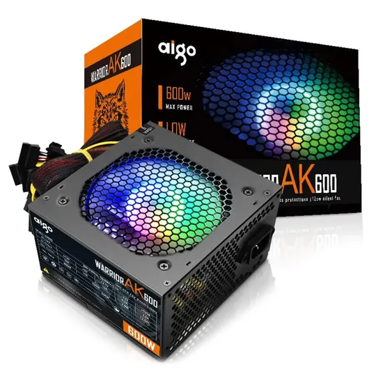 Fonte Aigo AK600 600W Real ATX 600W PFC Ativo 220V RGB - Preto
