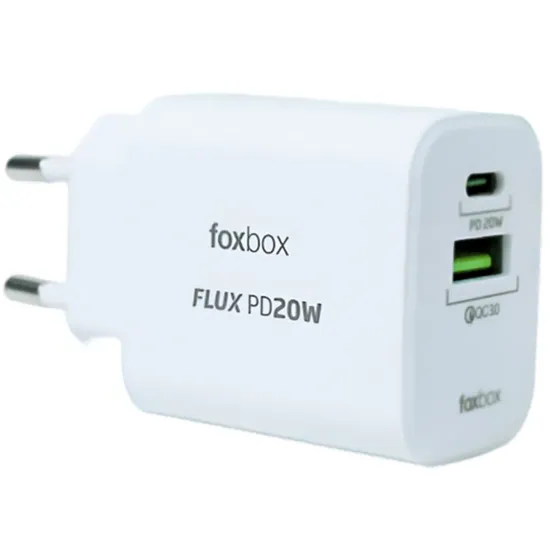 Foxbox Cargador Flux PD20W USB+Tipo C Blanco