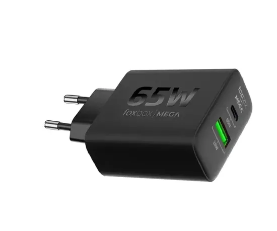 Foxbox Cargador Mega PD65W Corriente Adaptable Negro