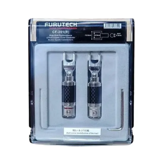 Compatível com terminais padrão de caixas acústicas e amplificadoresGaranta agora o seu Furutech Conector CF-201(R) Spade Carbon High End e descubra a diferença de uma conexão de alto nível. Qualidade sonora incomparável, engenharia precisa e visual luxuoso para os mais exigentes.