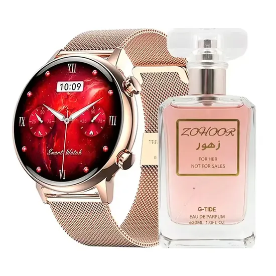 G-Tide Romance Smart Watch Dourado + Perfume Zohoor Edp 30ML Feminino