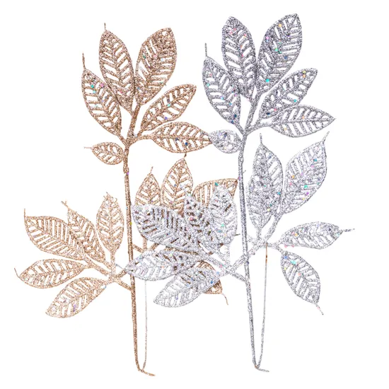 Galho de Natal Decorativo 30X18CM Prateado com Glitter