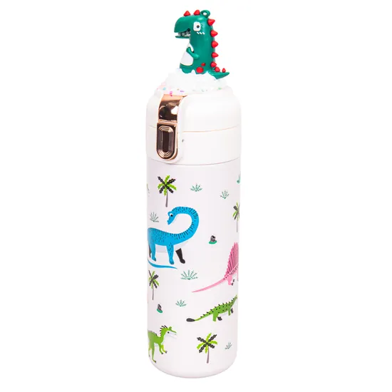 Garrafa Térmica com Bico e Design Dinossauro 350ML - Branco