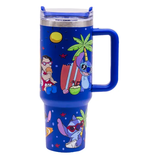 Garrafa Termica Stitch com Tampa / Canudo e Alça / 1200ML - Estampas Variadas/Azul Oscuro