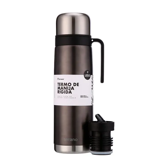 Garrafa Térmica Terrano - 1L - com Bico e Alça Rígida - Preto Metal