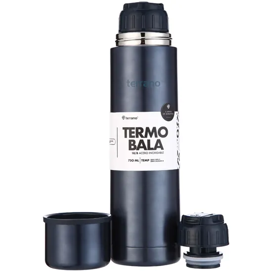 Especificações de Garrafa Térmica Terrano Bala - 750ML - com Tampa Tipo Mola - Azul Metálico