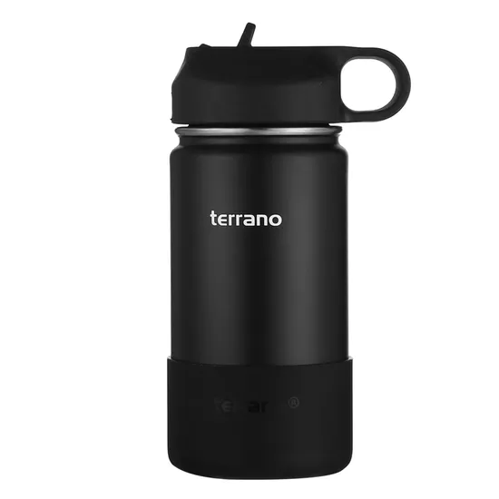 Garrafa Térmica Terrano Kids - 350ML - com Bico + 2 Canudos - Preto