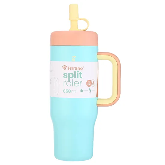 Garrafa Térmica Terrano Split Roler - 650ML - com Canudo - Azul Claro