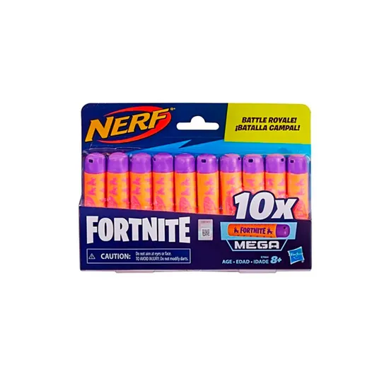 PAQUETE DE REPUESTO DE 10 DARDOS PARA LOS BLASTERS NERF FORTNITE MEGA: Incluye 10 dardos Nerf Mega oficiales con colores especiales de Fortnite
