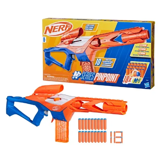 • LANZADOR NERF SERIE N PINPOINT: El lanzador Pinpoint está diseñado para una precisión de largo alcance, lo que te da la ventaja en juegos que exigen disparos precisos a distancia. Compatible solo con dardos Nerf Serie N N1
