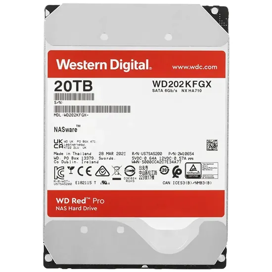 HD Western Digital 20TB WD Red Pro Nas 3.5" SATA 3 7200RPM - WD202KFGX (Garantia BR)