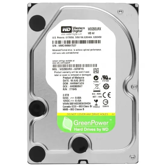 HD Western Digital 2TB WD Green SATA 3 7200RPM 3.5" WD20EURX Pull s/G