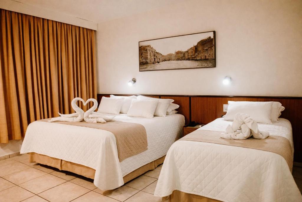 Os quartos do Águas do Iguaçu Hotel Centro são amplos, bem iluminados e equipados com ar-condicionado, frigobar, TV a cabo e telefone.