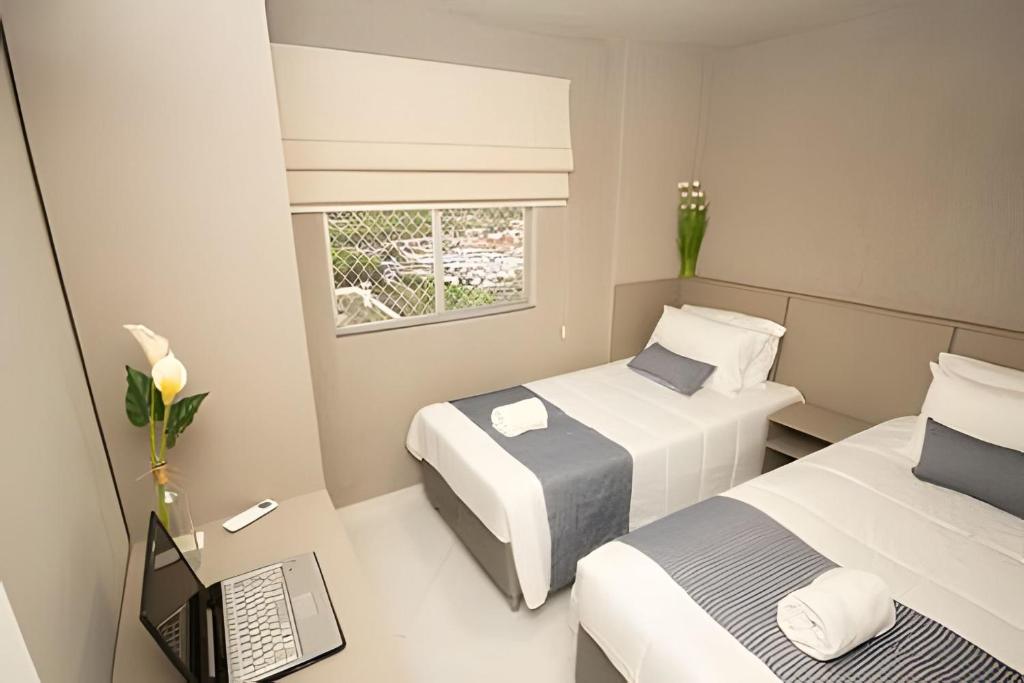 Sobre Apto 2 quartos no centro com piscina e ar-condicionado