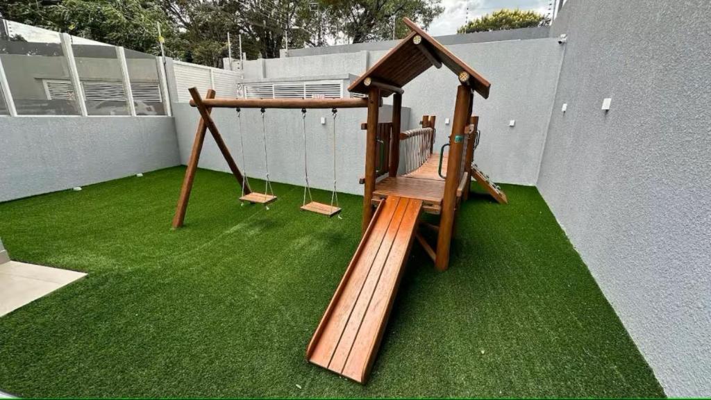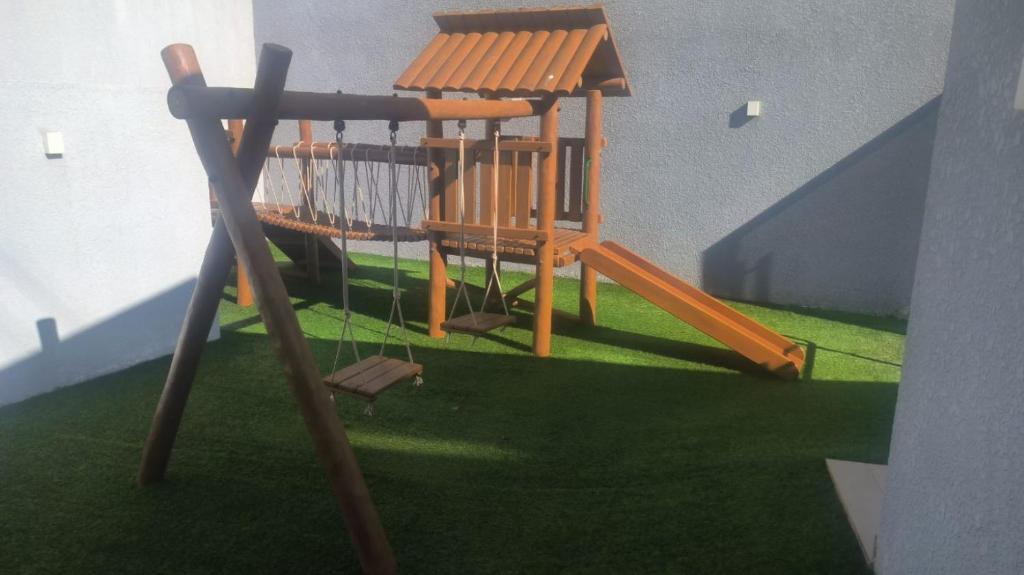Um terraço ao ar livre e um parquinho infantil estão disponíveis para você usar em Apto em area central.