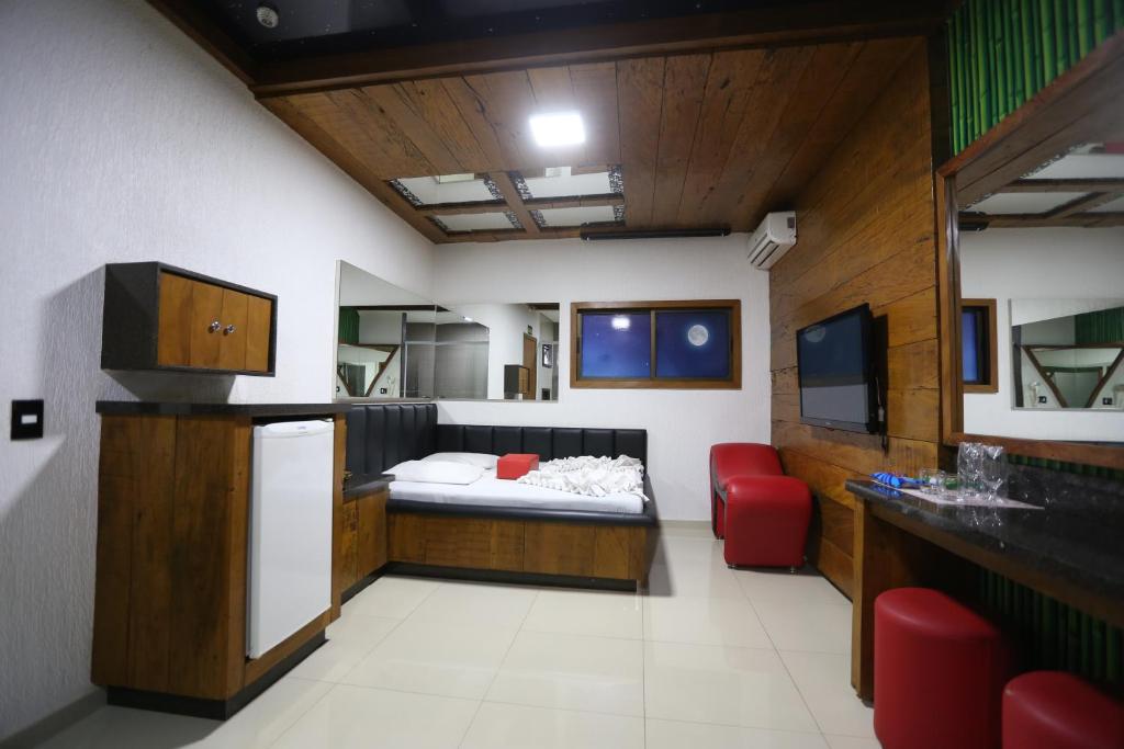 Neste motel, os quartos estão equipados com mesa de trabalho, TV de tela plana, banheiro privativo, roupa de cama e toalhas. Todas as unidades contam com frigobar.