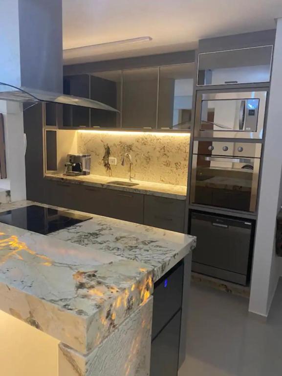 Este apartamento conta com 1 quarto, cozinha com geladeira e lava-louça, TV de tela plana, área de estar e 2 banheiros com chuveiro. O apartamento oferece toalhas e roupa de cama.