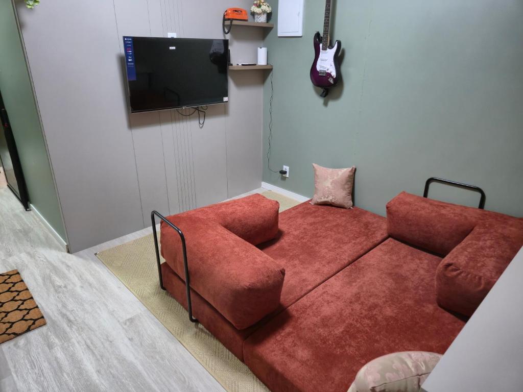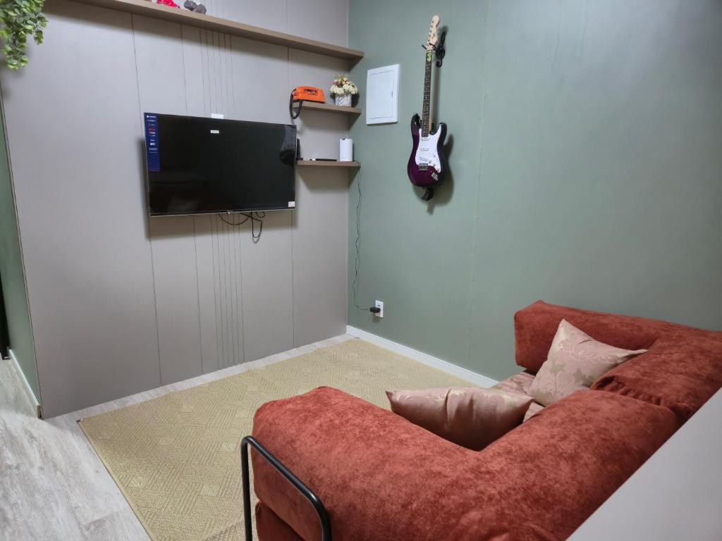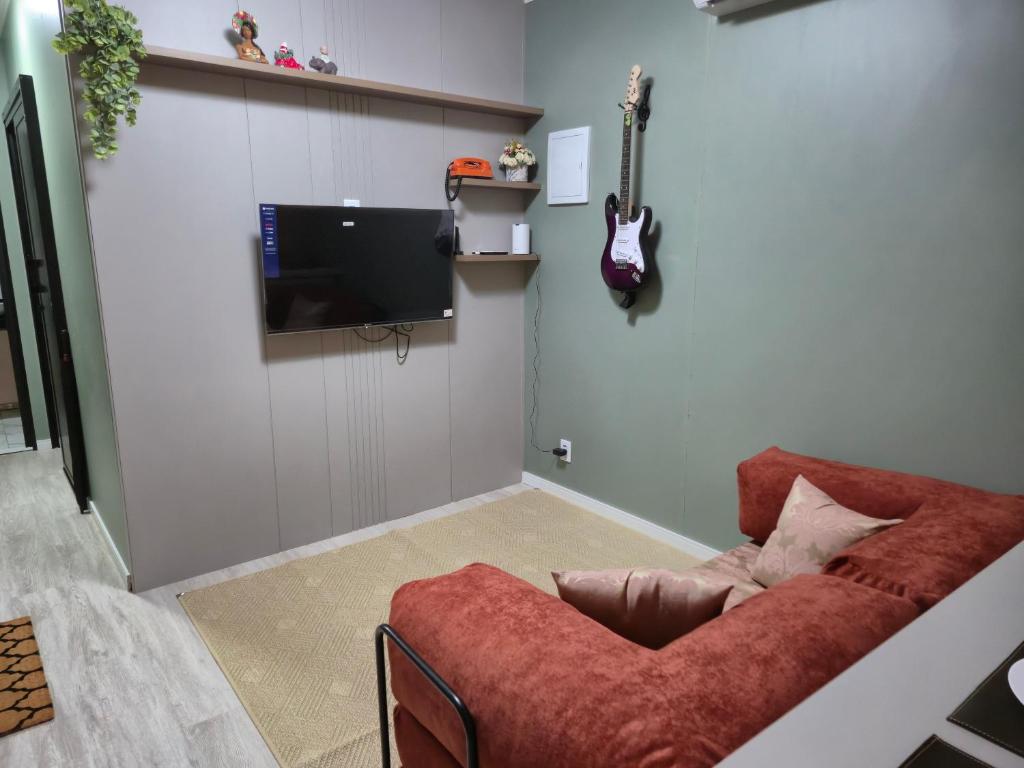 Esta casa de temporada oferece 1 quarto, cozinha com micro-ondas e frigobar, TV de tela plana, área de estar e 1 banheiro com chuveiro. A casa de temporada oferece toalhas e roupa de cama.