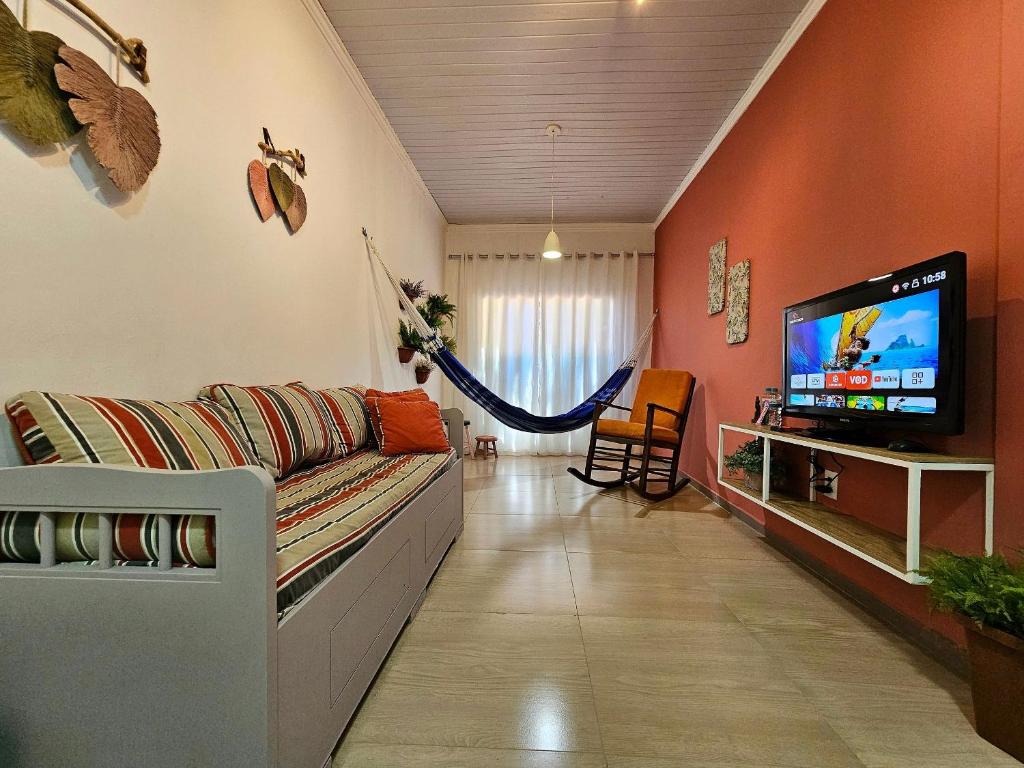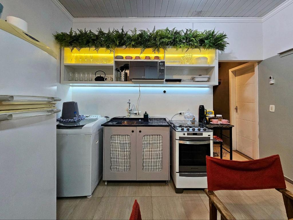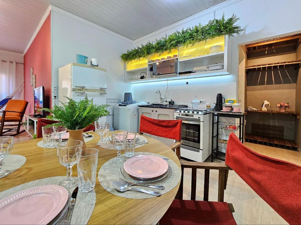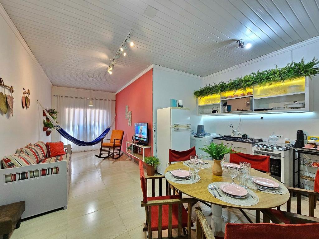 Esta casa de temporada possui 1 quarto, cozinha com geladeira e forno, TV, área de estar e 1 banheiro com chuveiro. A casa de temporada oferece toalhas e roupa de cama.