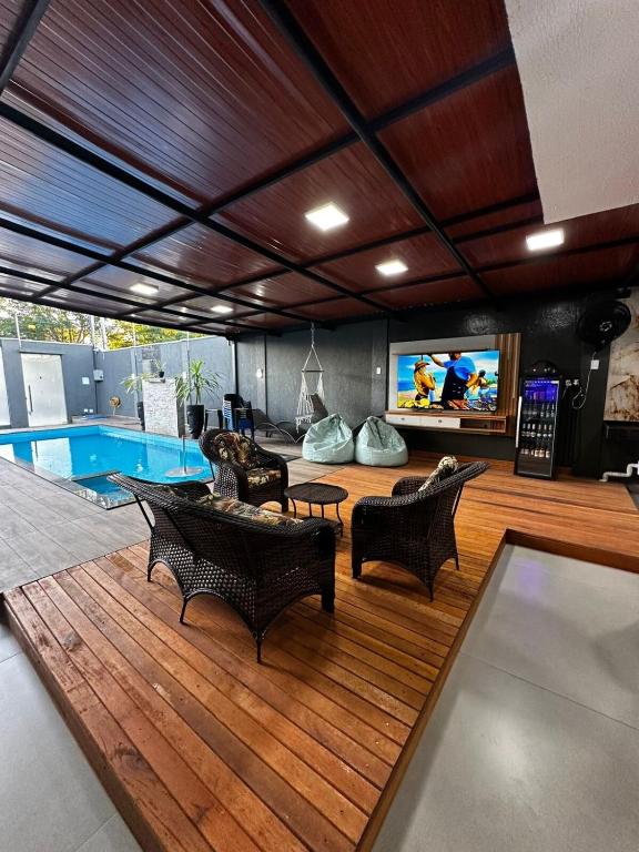 Casa em Foz do Iguaçu Conforto para sua Familia fornece acomodação em Foz do Iguaçu com acesso a piscina ao ar livre, churrasqueira, bem como uma recepção 24 horas. Usina de Itaipu fica a apenas 22 km de distância. Você contará com Wi-Fi grátis e estacionamento privativo disponível no local nesta acomodação com ar-condicionado. Cassino Iguazu fica a 12 km de distância.