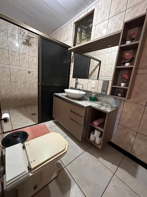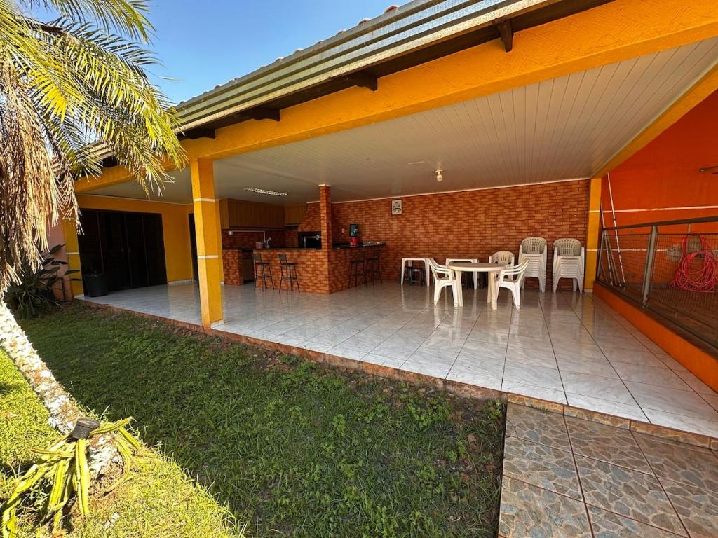 Casa grande com piscina fica a 24 km de Usina de Itaipu e a 24 km de Parque Nacional do Iguaçu. O Aeroporto de Aeroporto Internacional de Foz do Iguaçu - Cataratas fica a 9 km de distância.