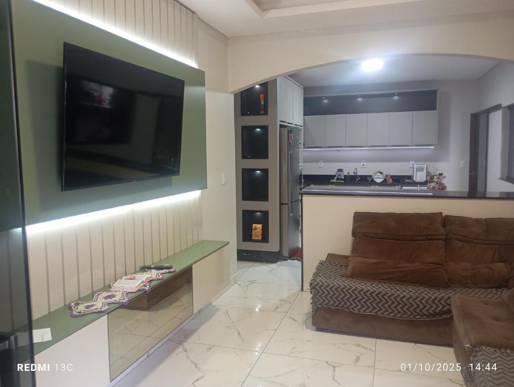A casa de temporada tem 1 quarto, cozinha completa e 3 banheiros. Você terá TV de tela plana à sua disposição.