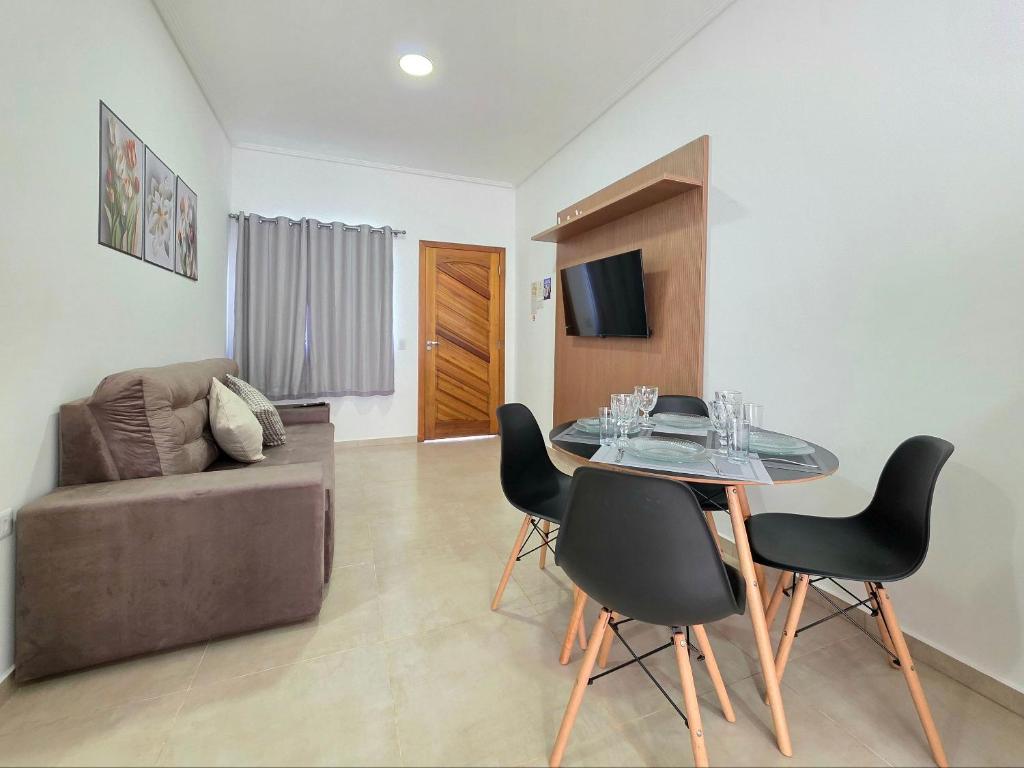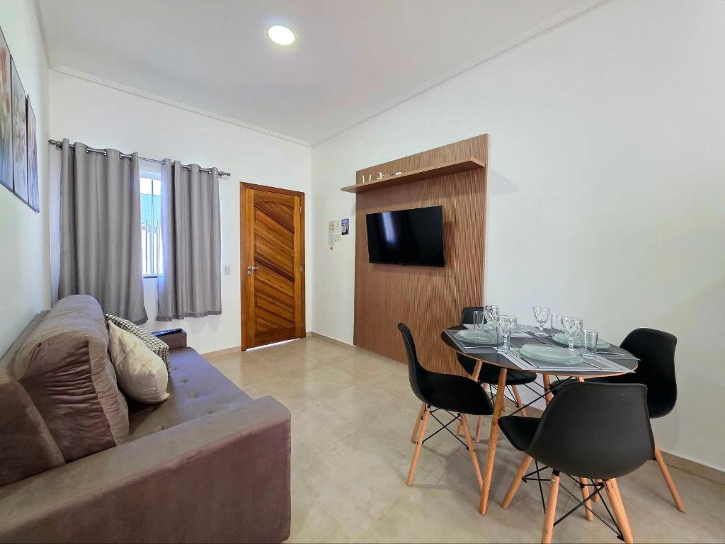 A casa de temporada tem 2 quartos, 1 banheiro, roupa de cama, toalhas, TV de tela plana com canais via satélite, espaço para refeições, cozinha completa e varanda com vista para a cidade.