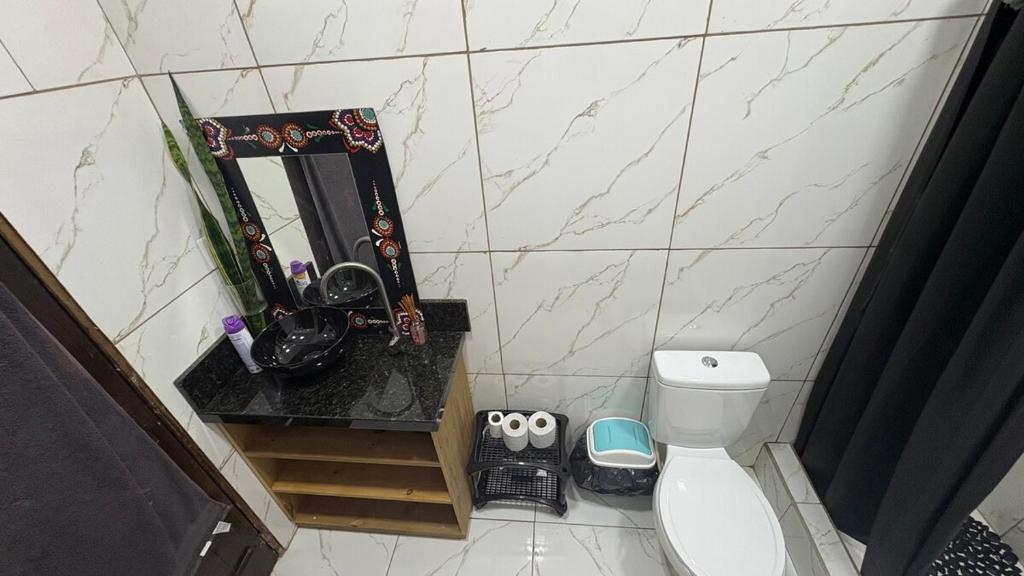 A casa de temporada tem 1 quarto, cozinha completa e 1 banheiro. Você terá à sua disposição TV de tela plana.