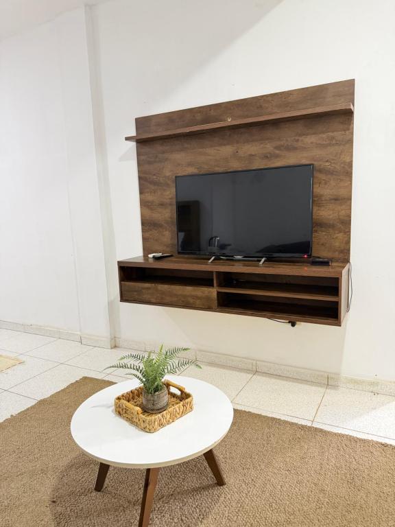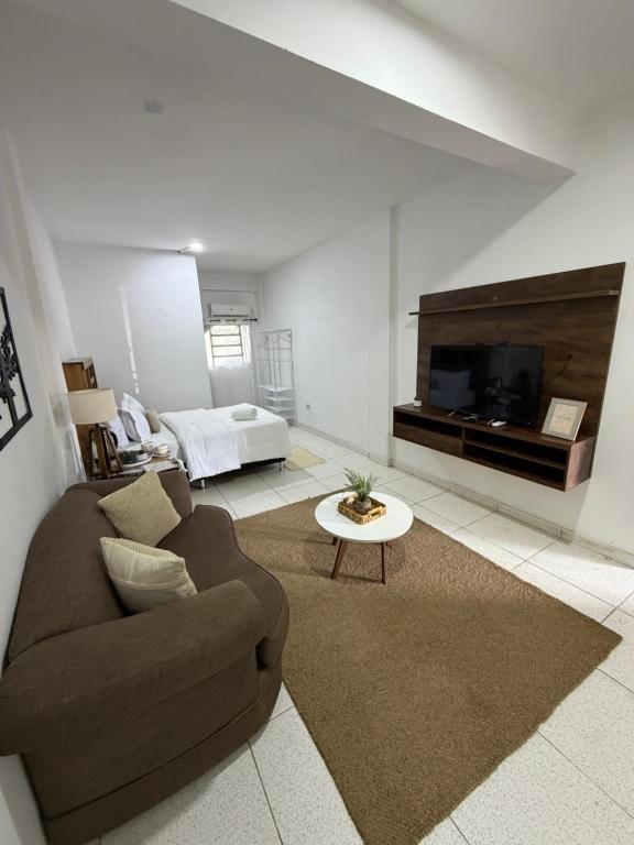 Este apartamento com ar-condicionado conta com 1 quarto separado, 1 banheiro com produtos de banho de cortesia, além de uma sala de estar. Você terá à sua disposição TV de tela plana.