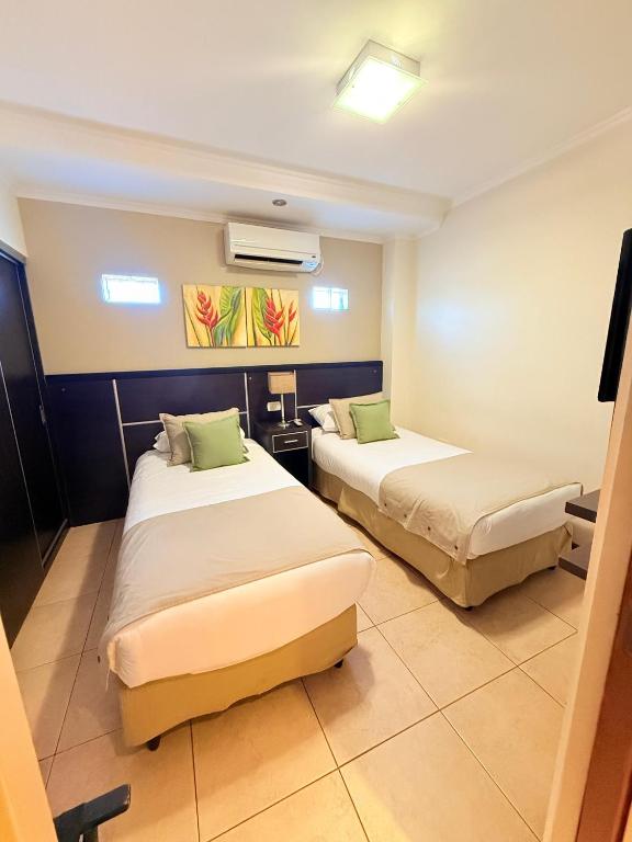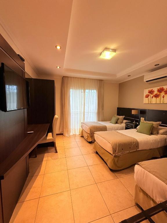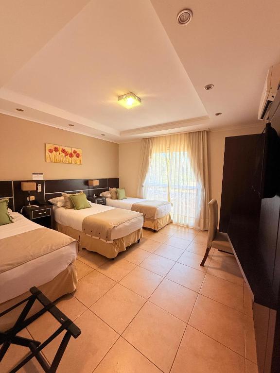 Os quartos do Jardin De Iguazu Hotel estão decorados com tapeçarias e colchas em tons pastéis e possuem janelas amplas com vista para o terraço interno. Todos dispõem de ar-condicionado.