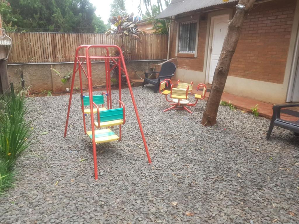 Um parquinho infantil e uma churrasqueira estão disponíveis para você usar em Iguazú Apartments.