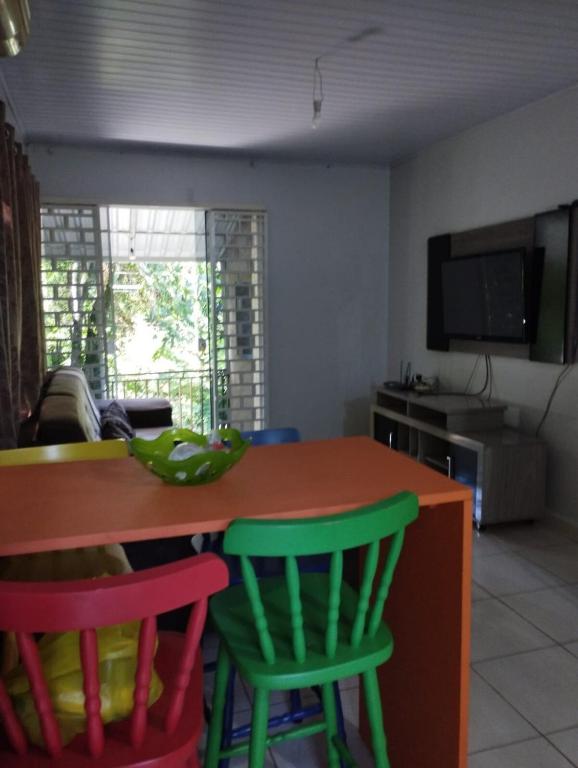 A casa de temporada tem 1 quarto, cozinha completa e 1 banheiro. Você terá à sua disposição TV de tela plana.