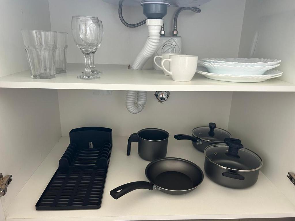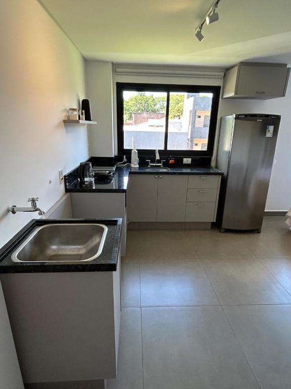 O apartamento possui 1 quarto, uma cozinha completa com geladeira e micro-ondas além de 1 banheiro com chuveiro e produtos de banho de cortesia. O apartamento oferece toalhas e roupa de cama.