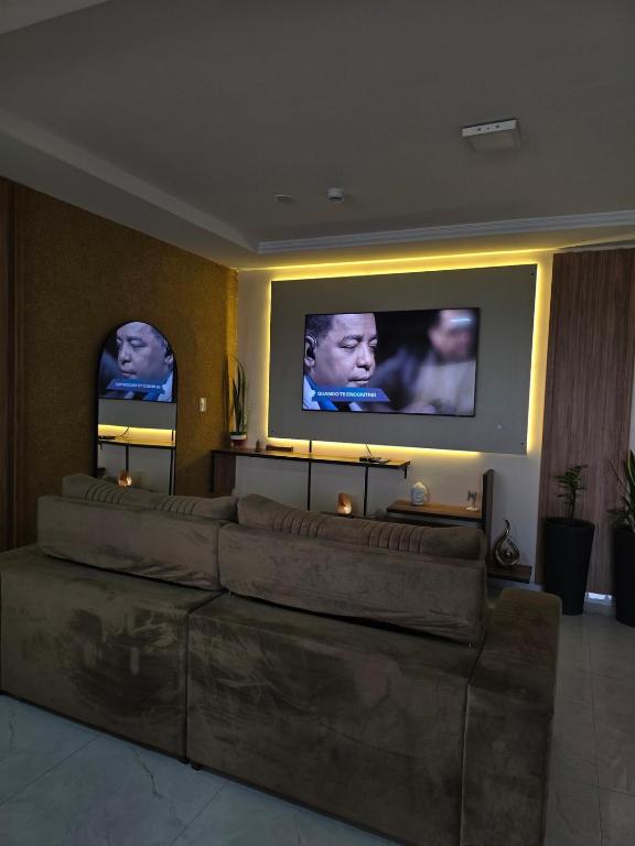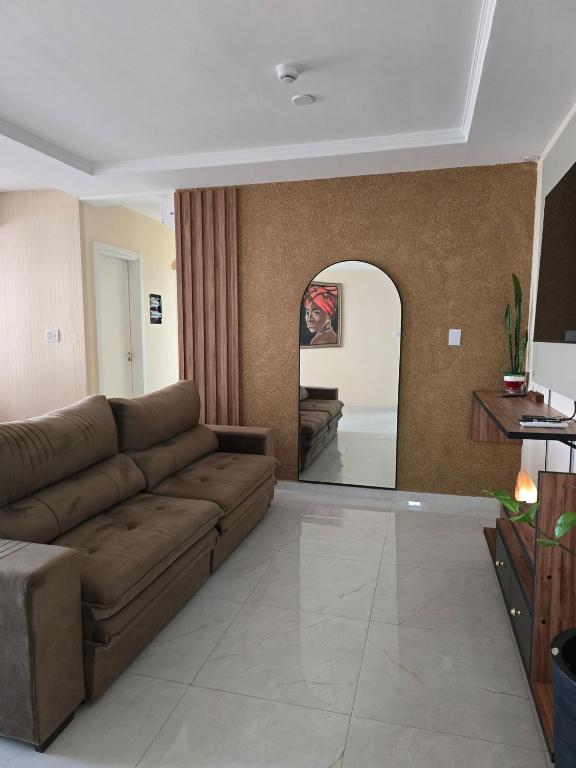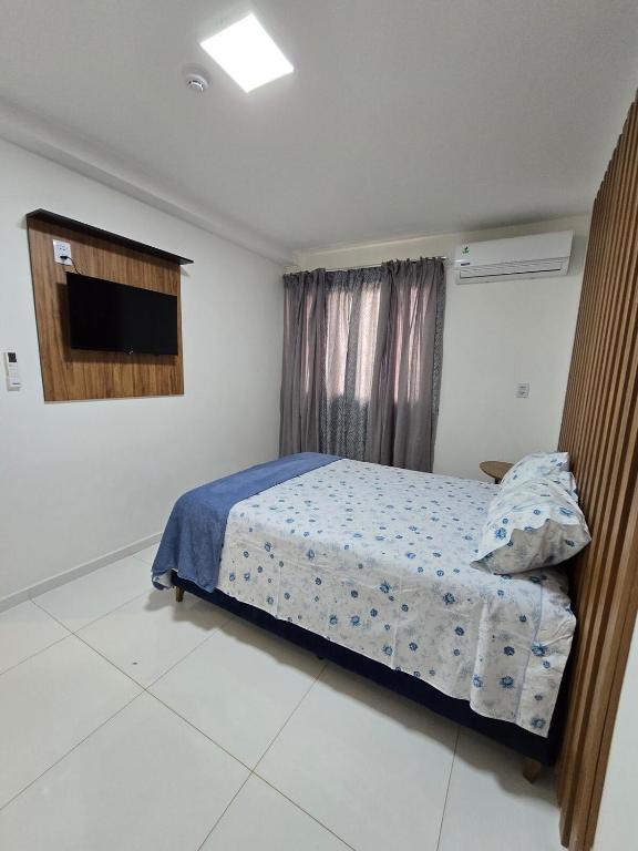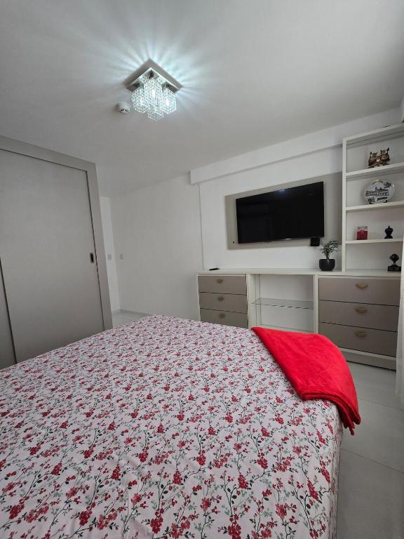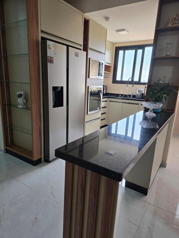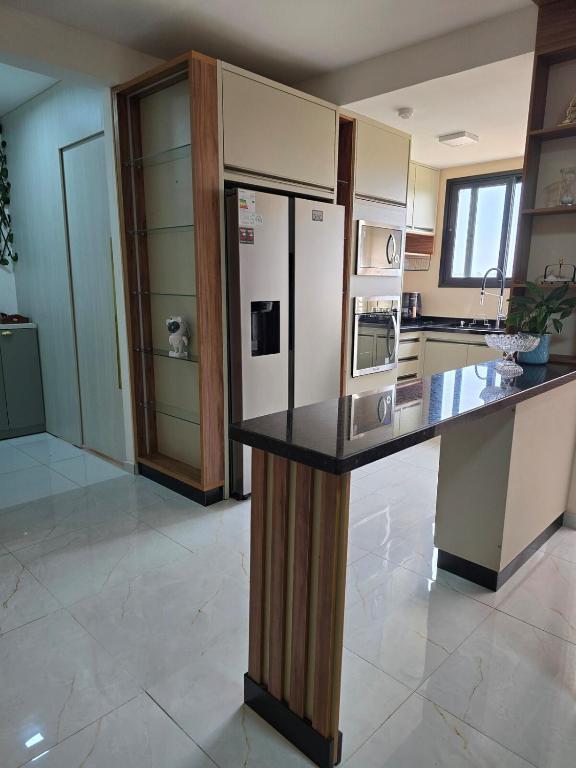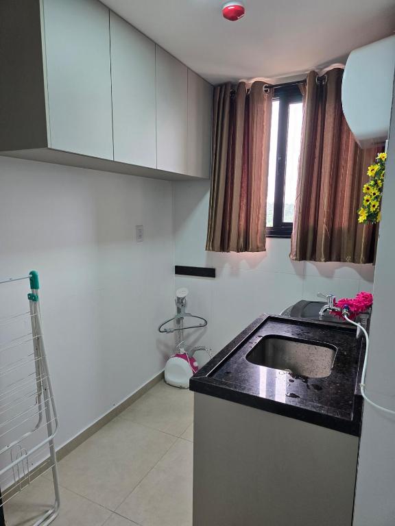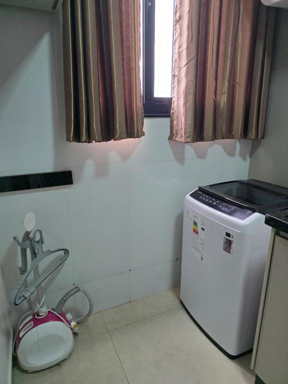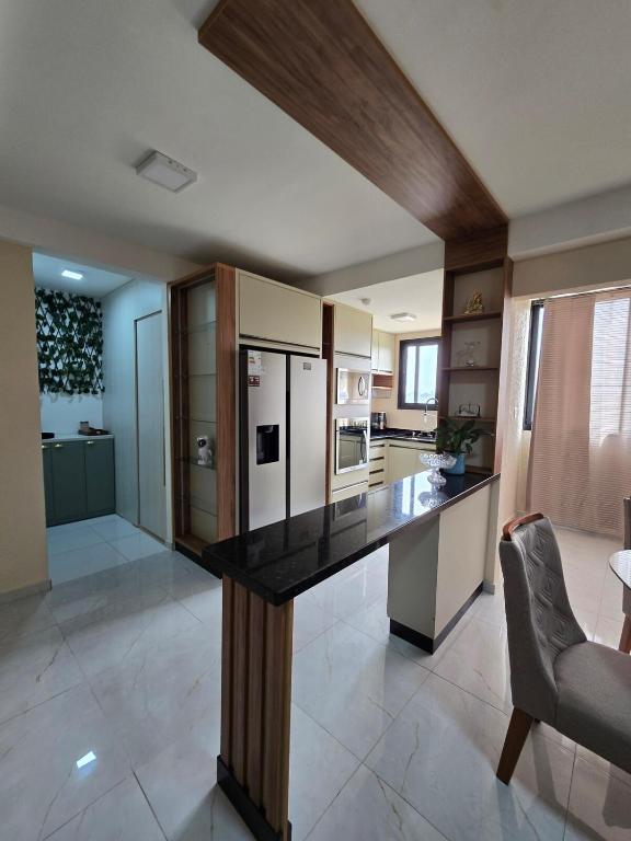 Este apartamento oferece 1 quarto, cozinha com geladeira e micro-ondas, TV de tela plana, área de estar e 2 banheiros com chuveiro.