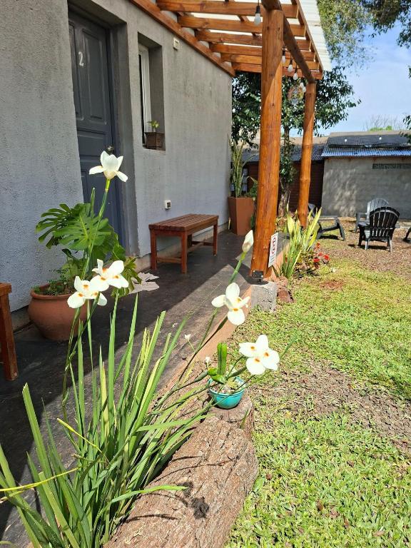 Você pode relaxar no jardim da acomodação.
