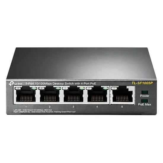 Especificações de Hub Switch TP-Link TL-SF1005P 5 Portas Gigabit 4POE 100MBPS - Cinza