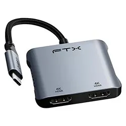 Hub USB-C FTX CT-CM2H4K-Ag 115571 4 Portas / 2 HDMI / USB / USB-C Fêmea - Cinza