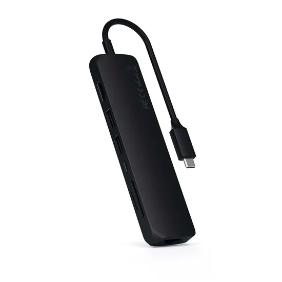Hub USB-C Satechi ST-P6SK 6 Em 1 Slim Multiport Adapter 4K - Black
